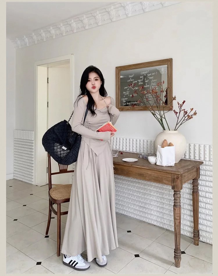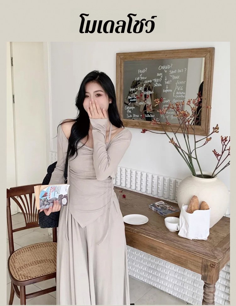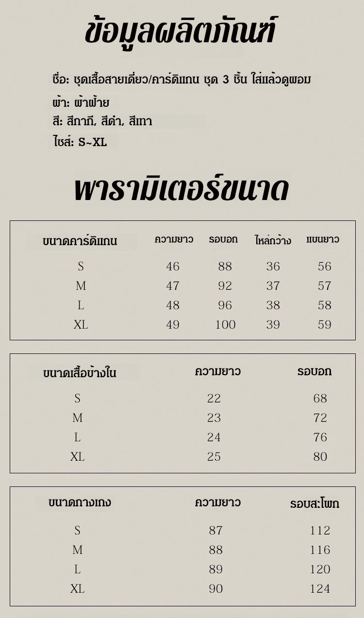 ชุดเซ็ทคาร์ดิแกนเสื้อสายเดี่ยว ชายเสื้อไม่สม่ำเสมอ ชุด 3 ชิ้น ดูผอม สำหรับผู้หญิง