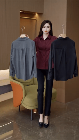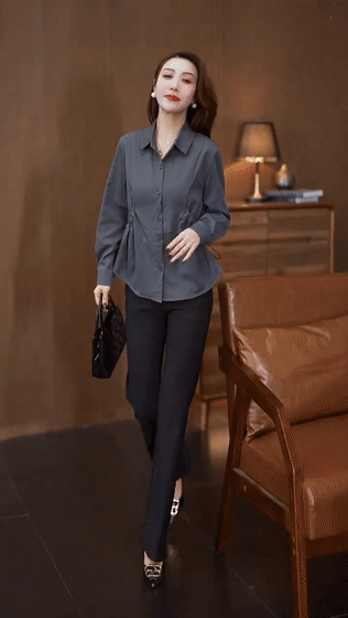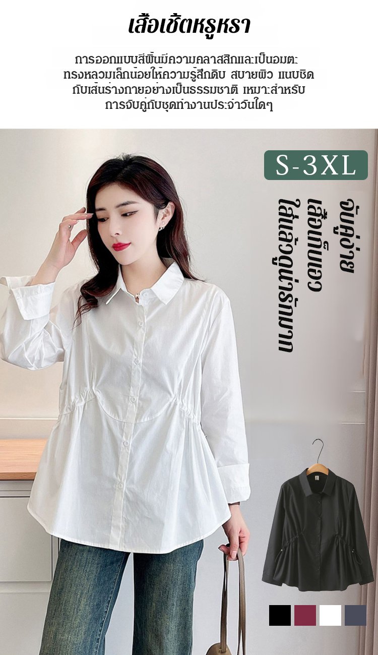 เสื้อเชิ้ตดีไซน์เรียบง่ายพร้อมเชือกรูด